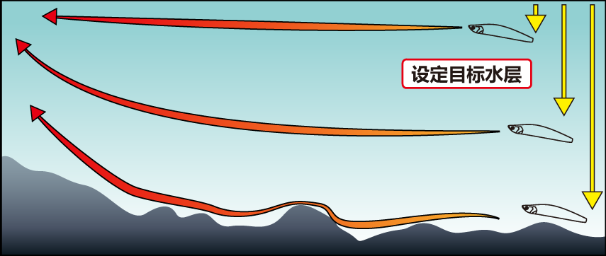 设定目标水层 全泳层饵理论上是全泳层,但到了实战的时候,钓者的每一次抛投都必定有一个目标水层,可以是多少米深,也可以只是一个读数。准确到达预设的目标水层是全泳层饵操控的灵魂!