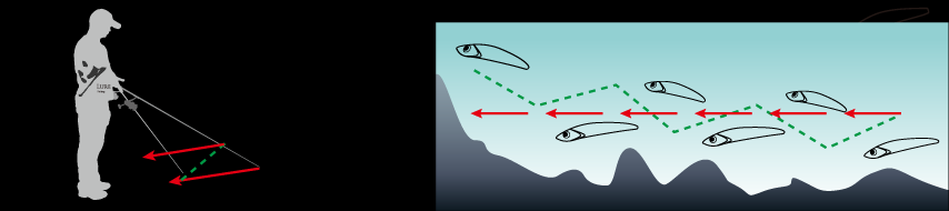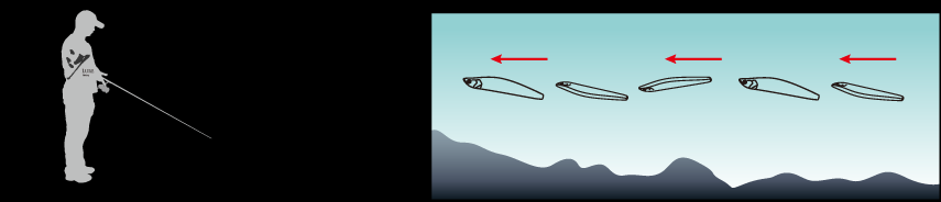 最常用的操控方式,抛出让沉水铅笔到达目标水层后,侧身横抽,挥动竿尖幅度每次约50cm,复位,收紧余线,隔一秒再抽一次,如此反复。与“M”型操控不同的是,路亚表现出水平方向上的左窜右逃的交替,似小鱼毫无戒心的游玩,攻取水库、湖泊的翘嘴鲌效果突出,对于海水类目标鱼就如岸投小铁板,效果亦佳。