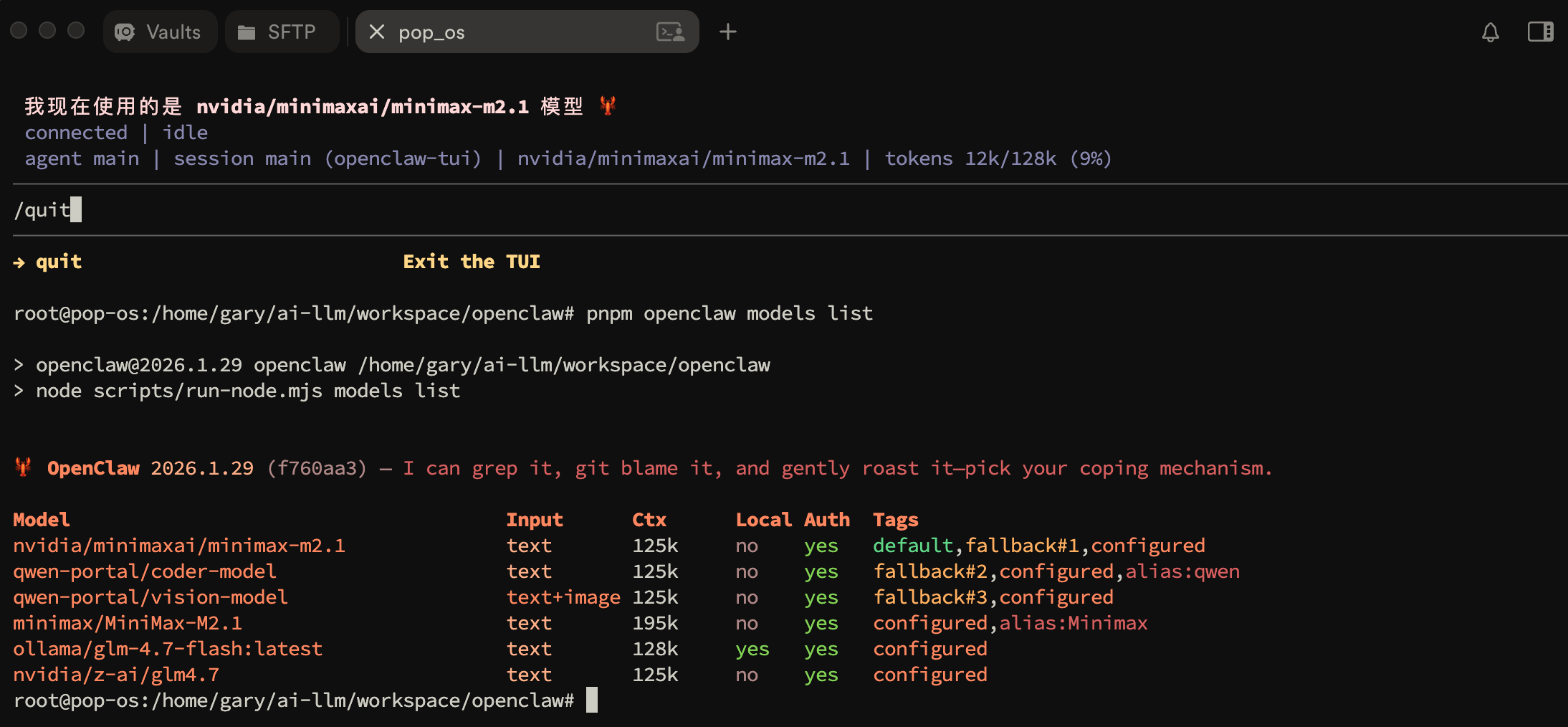 openclaw models set nvidia/minimaxai/minimax-m2.1